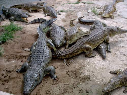 Les crocodiles de Yamoussoukro peuplent les trois lacs artificiels créés dans les années 501 entourant le palais présidentiel de Yamoussoukro, construit sur le site de N’Gokro. Il s’agit de crocodiles du Nil. Pesant près d’une tonne chacune et mesurant jusqu’à six mètres de long, ces crocodiles peuvent faire des sauts de plusieurs mètres pour saisir la nourriture qui leur est donnée quotidiennement (à 17 h).